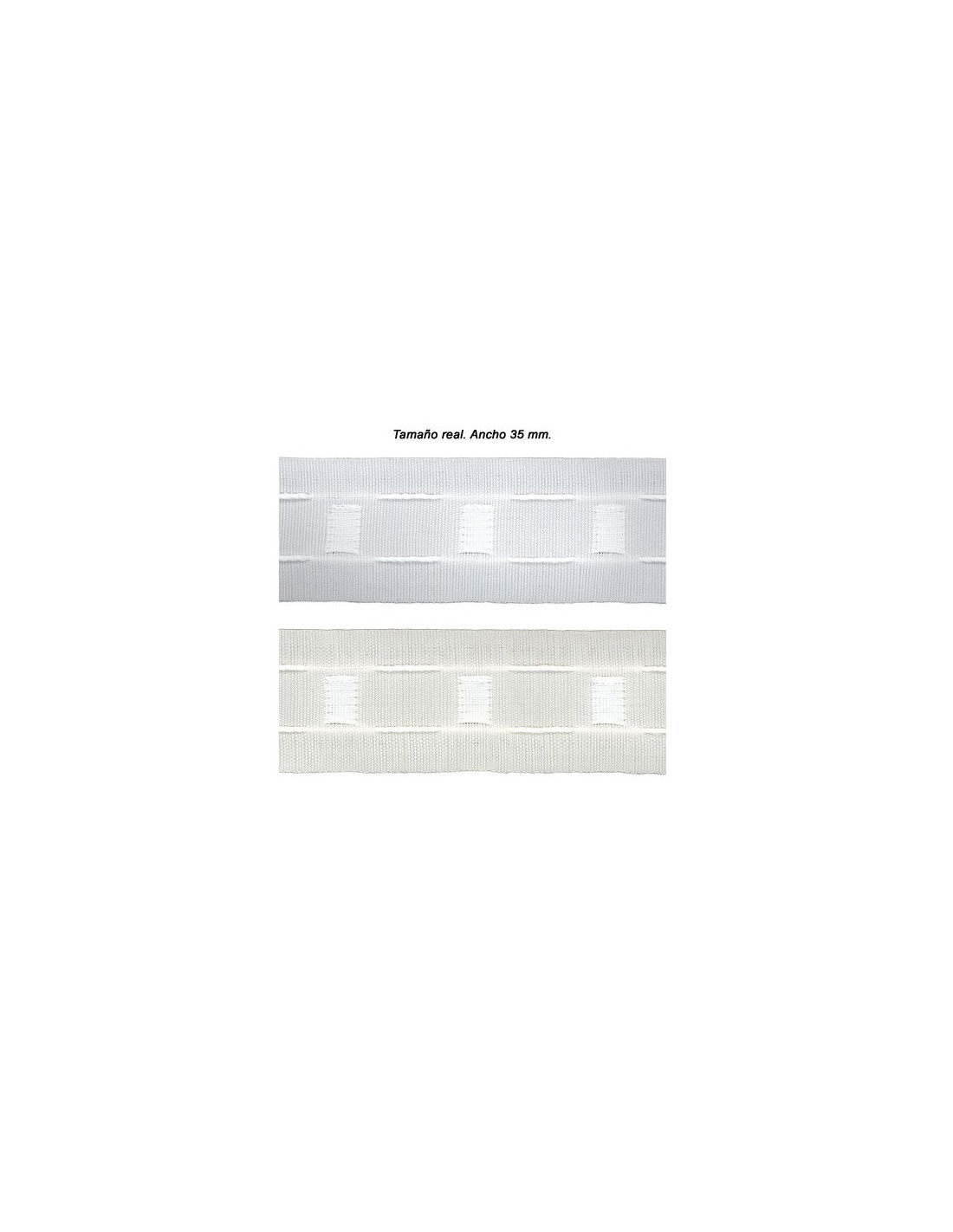Cinta de fruncir con 2 cordones para la fabricación de cortina rizada mayormente para cocina ó baño.