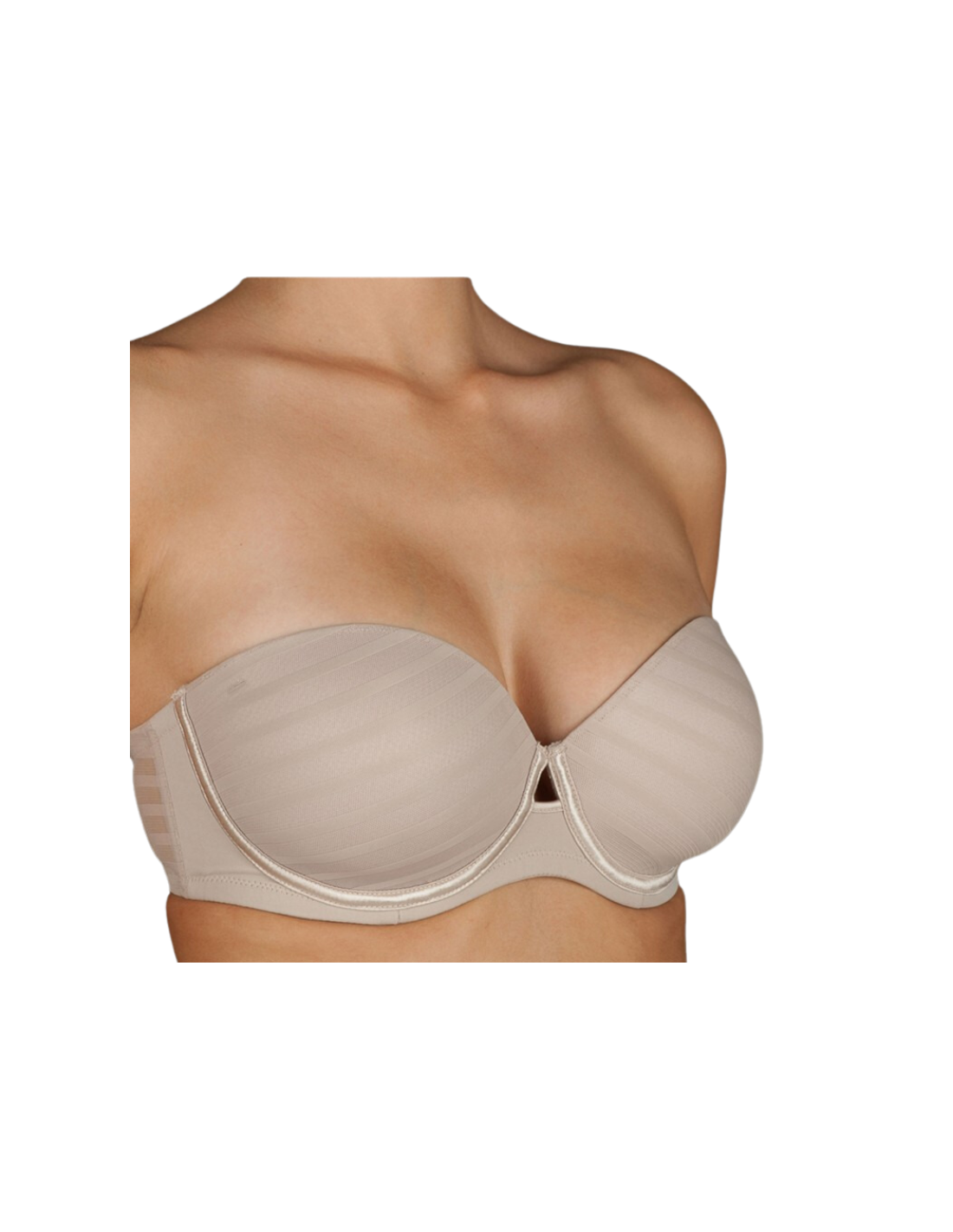 Sujetador sin tirantes LIVIA. Con aros, copa de relleno y fabricado en fino tul con franjas. Con copa C, de la marca SELENE. Incluye juego de tirantes textiles.