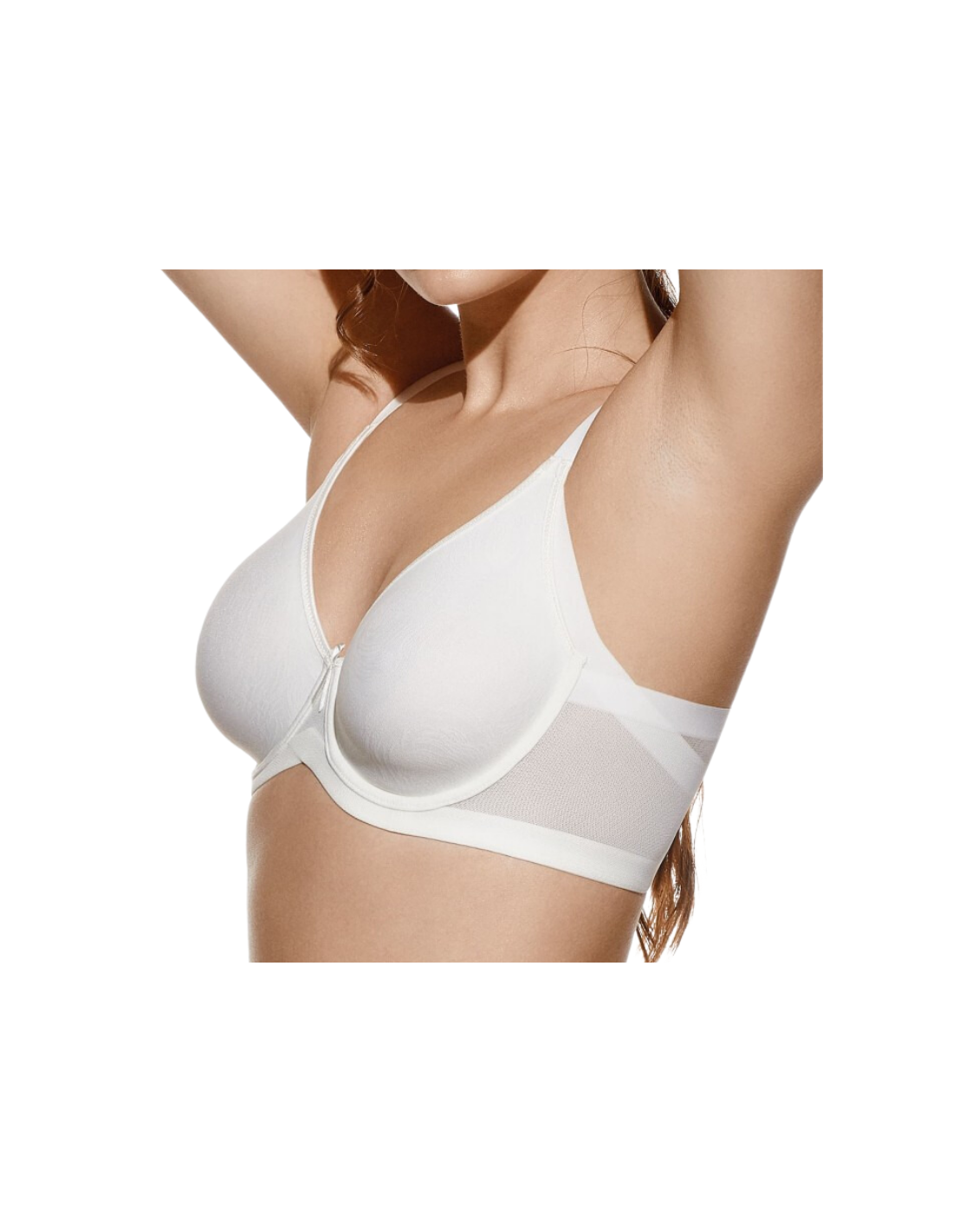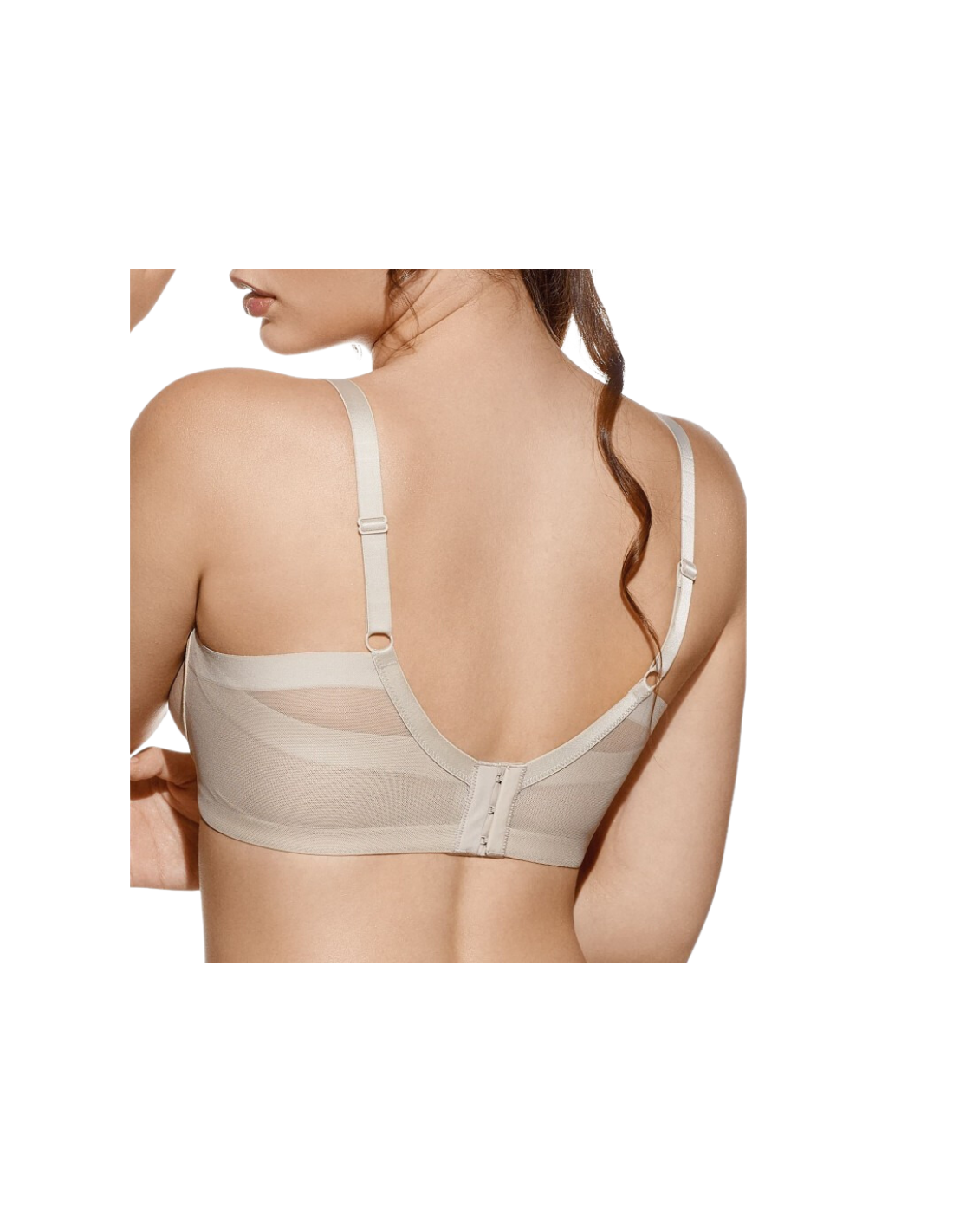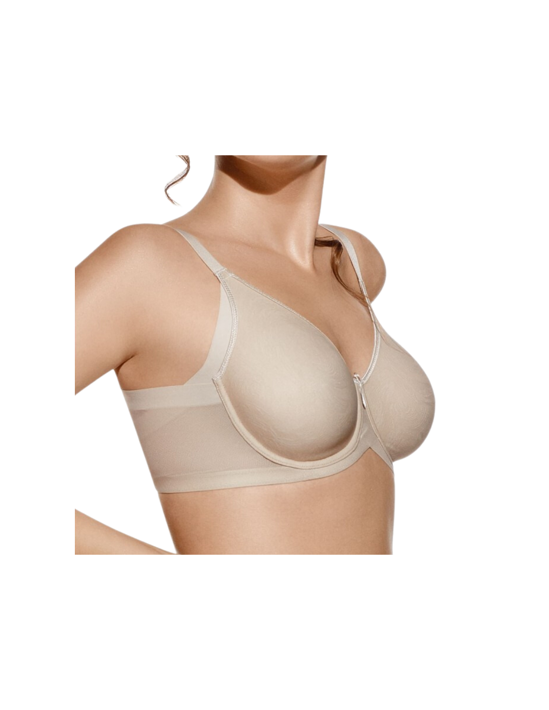 Sujetador FRIDA con aros sin relleno y cruzado de tules de control con corte láser, especialmente diseñado para cubrir y minimizar las irregularidades del costado y las axilas, proporcionando una cobertura perfecta, alisando y estilizando tu figura.